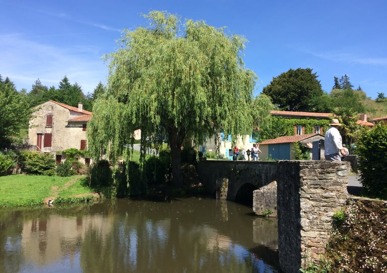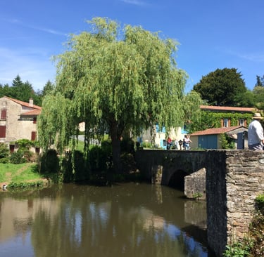 Vouvant is an attractive, medieval village, only 15 minutes away. There is an old tower at the top of the ramparts and lower down, a lovely walk along the river. The village has a reputation for its artist and there are several galleries plus a selection of shops and café/restaurants with outside seating.